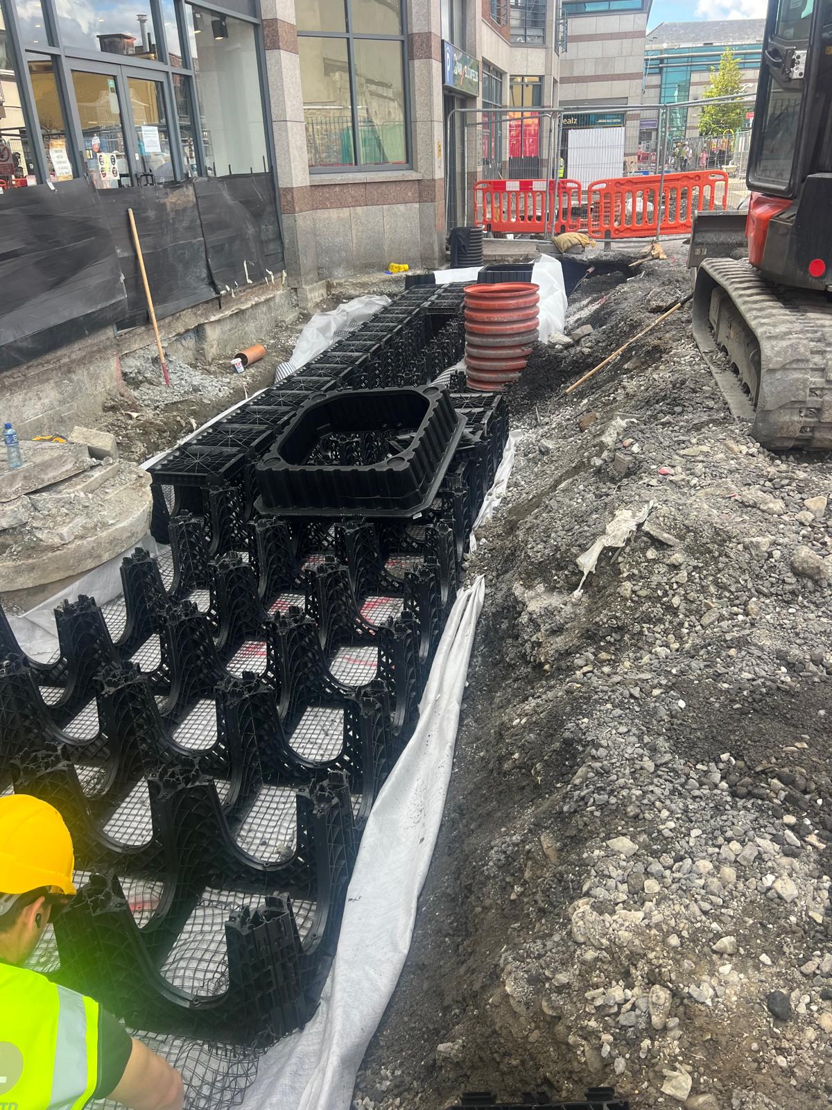 This project was set in the heart of Myrtle Square, a busy hub in Dún Laoghaire surrounded by thousands of daily pedestrians, local business deliveries including major outlets like Tesco, a busy street road and the project was adjacent to a live hospital. The project coordination team implemented strategic planning between Cumnor Construction and Avondale Landscapes to manage these challenges effectively. This included scheduling work during off-peak hours, maintaining clear and safe pedestrian pathways, and ongoing communication with local businesses and municipal authorities to minimize disruption.