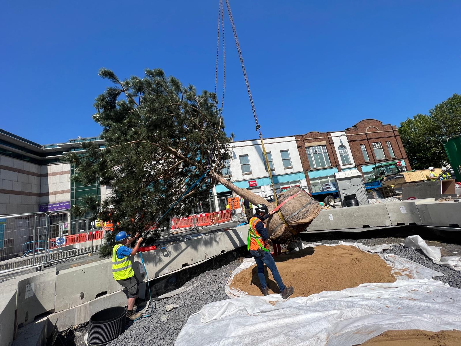 As the project progressed, further detailed landscaping was carried out. This involved the continuation of topsoiling to the designated finish levels and the installation of additional semi-mature trees and shrubs from selected nurseries. Garden World supplied specific Pinus Sylvestris that were chosen for their robustness and suitability to the local climate, while Annaveigh Nurseries provided a variety of other trees, shrubs and bulbs that were used to fill out the landscape design. The installation process was carefully coordinated to accommodate the varying light conditions and other stresses associated to urban planting.