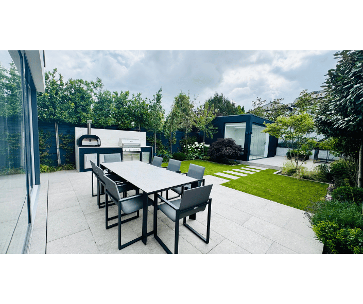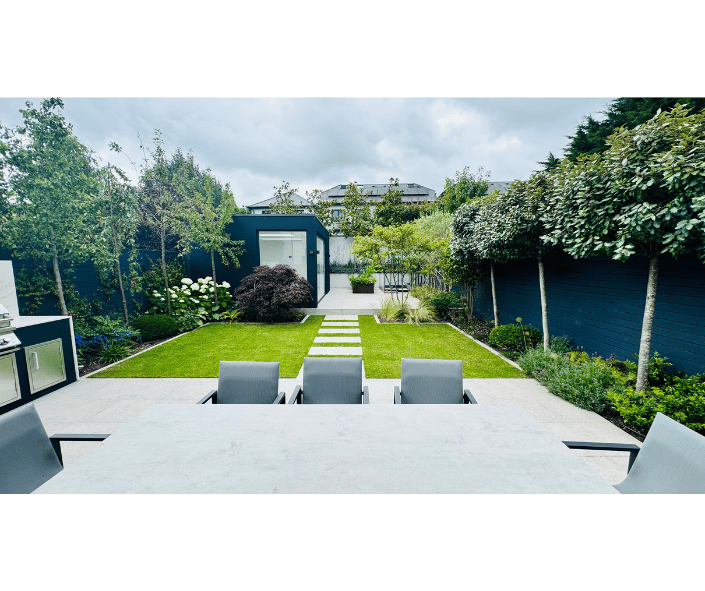 The brief was complex based on the space to work with. The client is very hands on and requested a garden room to relax in, storage, glass house and grow your own space, an outdoor cooking station, sun terrace and dining space with a select palette of planting and screening trees.